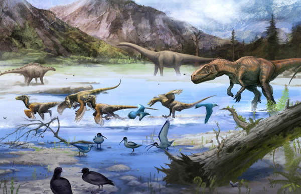 距今约1.2亿年前的魔鬼城地区的古生物群复原图