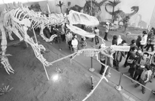 24日,中信城恐龙展隆重开幕。据主办方统计,24日的参观客流达到15000余人。媒体组织的500多名读者来到现场,见到恐龙化石真容后,感到很新奇。