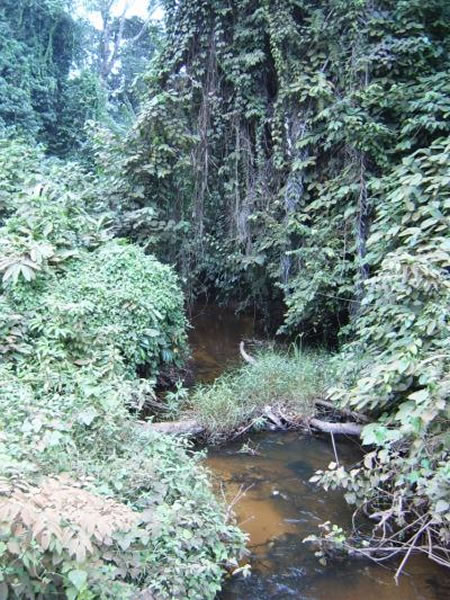 管嘴电鱼也可以在加蓬的热带雨林小溪流里找到。在Bambomo溪流这里,大量的 Paramormyrops kingsleyae 被发现。