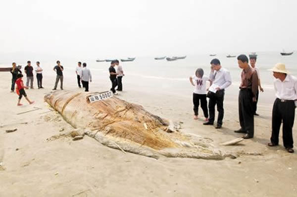 本月25日,陆丰市金厢镇洲渚村海滩上漂来一条大鱼,该鱼全长超过17米,估计重量逾万斤,引来当地及外地不少好奇者前来观赏。据当地66岁的渔民黄水明称,他一生打鱼,也没见过这么大的鱼。可惜该鱼被发现时已经死了,经过数天的风吹日晒,已经发臭。