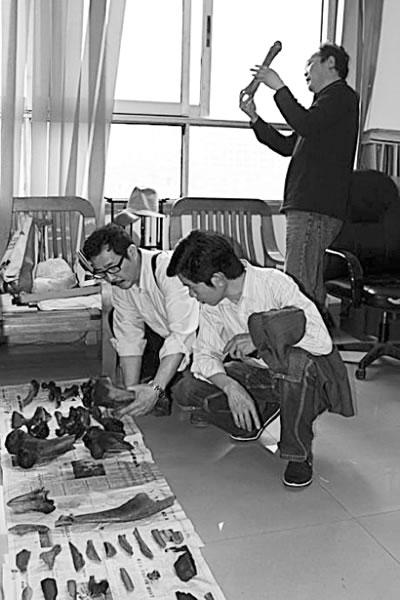 万盛青年镇建筑工地里挖出10万年前野牛化石 来源: 蜘蛛网 时间:2011年4月30日 09:40 万盛青年镇建筑工地里挖出10万年前野牛化石 记者从重庆自然博物馆获悉,万盛青年镇一处建筑工地里挖出了20多块奇怪的“骨头”。经专家鉴定,这是第四纪(10万年前)的野牛化石,对研究当时的地理环境和人类行为提供了实物依据。 “有些遗憾的是,我们赶到现场时,发现化石上的淤泥已经被工人出于好心清洗干净了。”自然博物馆地球科学部主任朱松林表示,在两块碎骨上发现了人为敲击的痕迹,但目前用肉眼很难断定是否是古人类所为。 中国网(记者 纪文伶 实习生 王序) 上一篇 下一篇 TAG: 化石 野牛