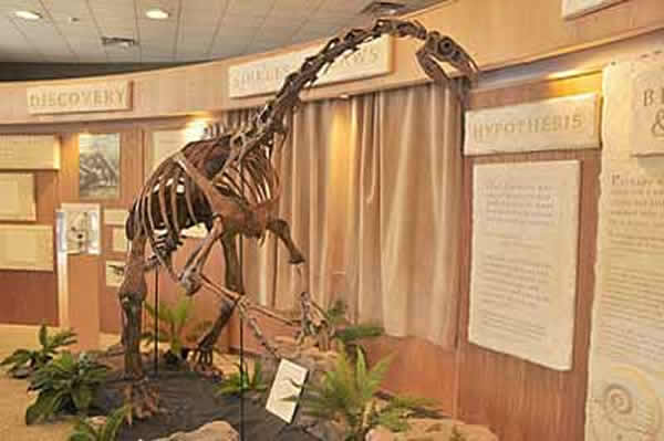 但在白垩纪晚期(late Cretaceous Period),葛兰峡谷附近地区却是一片内陆海。这就是令人感到神奇的地方,这种陆地恐龙竟然会神奇的保存在距离当时海岸线60公里的深海页岩层中。在这次展览中你就可以看到这一神奇的现象:陆生恐龙令人费解的在海边结束了它的生命。