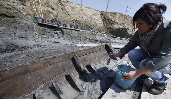 考古学家近日在罗马城附近进行桥梁维修工作中发现了一艘古代船舶,2500年前这里曾是古奥斯蒂亚(Ostia Antica)海港城市,11米长的船体是在那所发现的最大古代船舶之一。