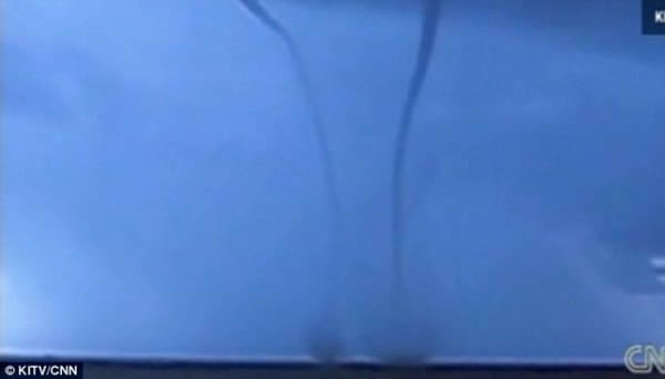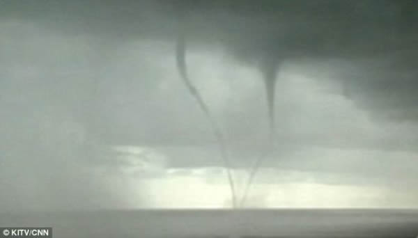 美国夏威夷出现双龙吸水龙卷风罕见奇观
