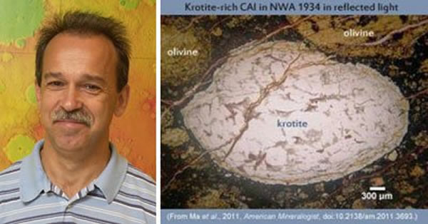 在最新一期的《美国矿物学家》期刊上发表了一篇文章:一组科学家宣布发现了一种新矿物质,国际矿物学协会将其命名为Krotite。根据目前的分析,该物质被认为是我们太阳系中形成时间最为久远的几种矿物质之一,也是早期行星形成材料,其源头可追溯到地球以及其他行星形成之前。