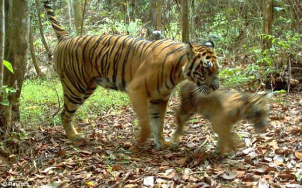 印尼即将被砍伐的森林中拍摄到12只极度濒危的苏门答腊虎