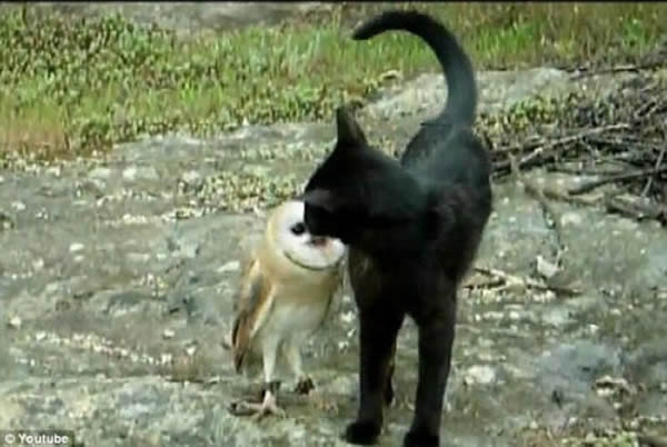近日,上传于西班牙的一个视频在YouTube网站上广受追捧。视频中,一只猫头鹰与一只猫成为玩伴,打打闹闹。该视频创下了50万的点击量。