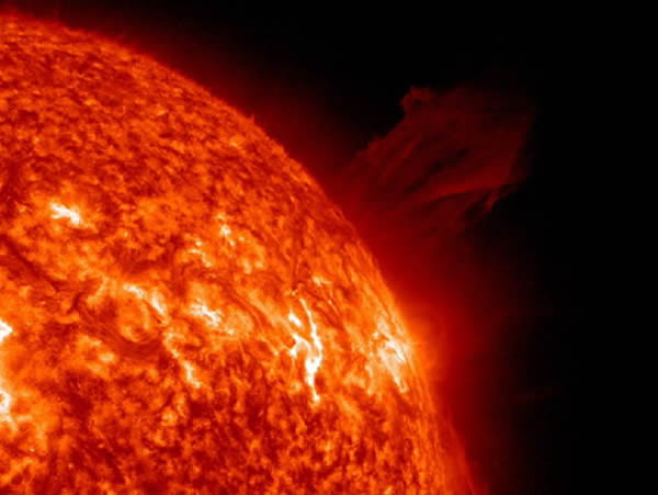 日冕物质抛射会持续数个小时,将大量日面物质抛入太空。每次这样的爆发可以将超过100亿吨等离子体抛入空间并加速运动,其速度可以达到每小时数百万公里。