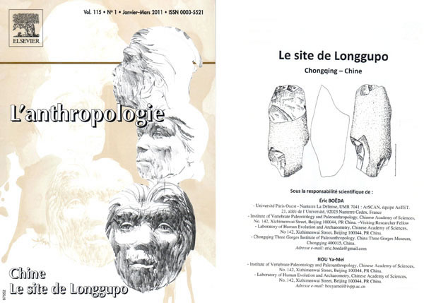 中国科学院古脊椎动物与古人类所研究员侯亚梅与法国大学院院士、法国科研中心暨法国巴黎西大拉德芳斯(原巴黎十大)—南特分校教授、中国科学院古脊椎动物与古人类研究所客座研究员Eric Boëda合作编著的“中国龙骨坡遗址”研究专著的法文版(附英文摘要)于2011年1月在法国L'Anthropologie期刊第115卷1-3月号刊发表(参见https://www.em-consulte.com/revue/anthro )。