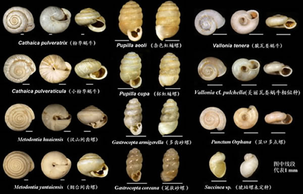 图1 L9黄土地层中常见蜗牛化石图版照片