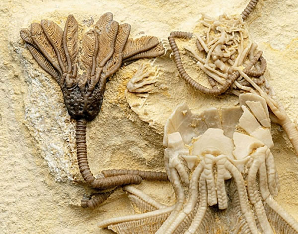 根据奥欣奇博士的描述,生物多样性的丧失直接导致泥盆纪末期的地球被一种名为海百合(Crinoids)的动物所占据,这是一种身体呈花状的棘皮动物,基座部分包有一层石灰质硬壳。那段时期海百合的数量是如此之多,以至于对应于那段时期的整个石灰岩地层都是由海百合的尸体所组成的!地质学家将那段时期称为海百合时代。