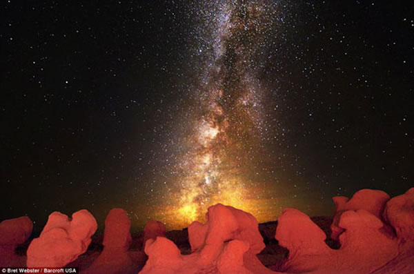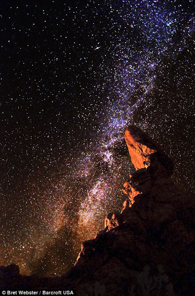 这些照片其中之一被登刊在了《国家地理》杂志上,从此他的人生有了新的方向。这些精美的图片看起来跟哈勃望远镜拍摄的相差无几,实际上,却是用韦伯斯特的妻子给他的再普通不过的数码相机,外加一个三脚架拍下的。拍摄的地点在韦伯斯特的家乡——犹他州的国家公园里。照片里,银河美得令人惊叹,让人忍不住感叹在茫茫宇宙中,地球是多么地渺小。