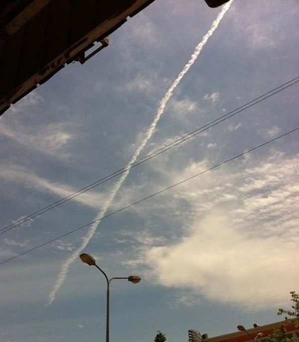 江苏响水县城天空突然发出一声巨响 随后出现一条长的白色轨迹