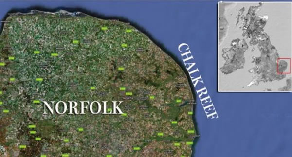 英国诺福克郡近海发现世界上最长的白垩岩礁