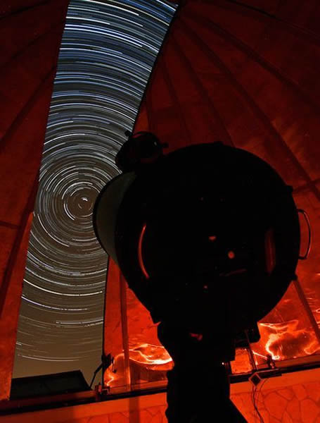 美国国家地理一周太空图片精选:船底座星云 来源: 蜘蛛网 时间:2011年6月01日 12:24 4.星星轨迹 星星轨迹(图片来源:Amir Abolfath, TWAN) 最近公布的一幅长曝光照片,在伊朗的一座业余天文台的圆顶外,星辰好似在旋转。照片曝光时间超过两小时,星星环绕北天极移动。提到北天极,人们总是会想到北极星。相对于北半球观测者而言,北极星总在地平线上,其地平高度角与观测者的地理纬度几乎相同。在南半球,与南天极对应的自然是南极星。巴西国旗中共有27颗星星,其中一颗便是南极星。 上一页12345678下一页 上一篇 下一篇
