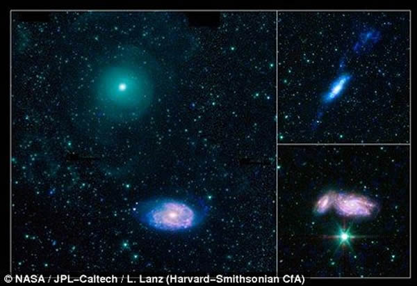 星系撞击:这是最新公布的“星系相撞地图”中展示的三个星系撞击场面