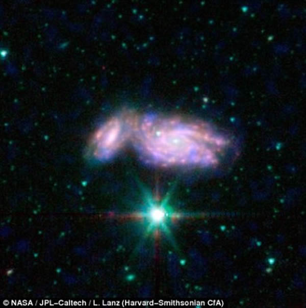 这些撞击模拟图是借助美国宇航局斯必泽太空望远镜和星系演化探测器(Galex)的图像数据制成的。星系演化探测器的工作波段是紫外,这一波段对高温的年轻恒星发出的辐射非常敏感。而斯必泽太空望远镜的工作波段则是红外,它对被恒星加热的温暖尘埃非常敏感。