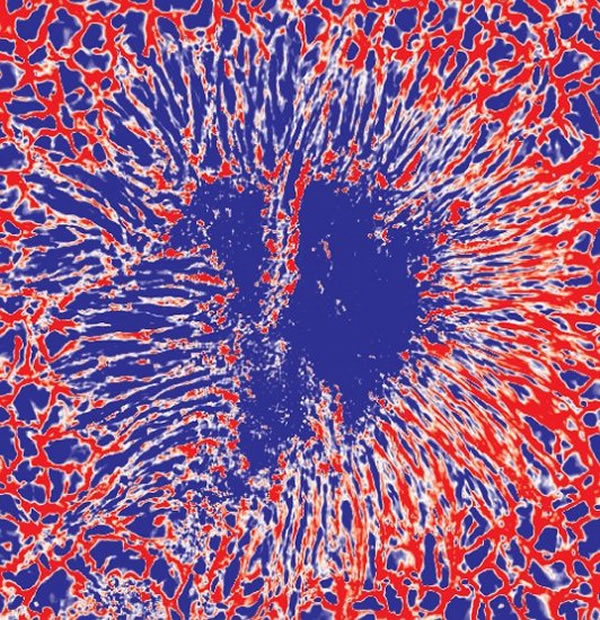 观测结果显示:太阳表面颜色较暗的区域,下冲运动的速度可以达到每小时3600公里,而在较为明亮的区域,上喷运动的速度可以超过每小时1万公里。模型表明:炙热的柱状气体流从黑子的核心区域向外猛烈抛射,而后大面积扩散、冷却和下沉,整个过程显得迅速且有条不紊。