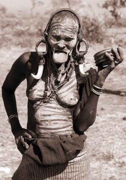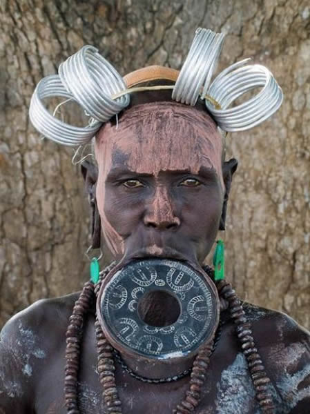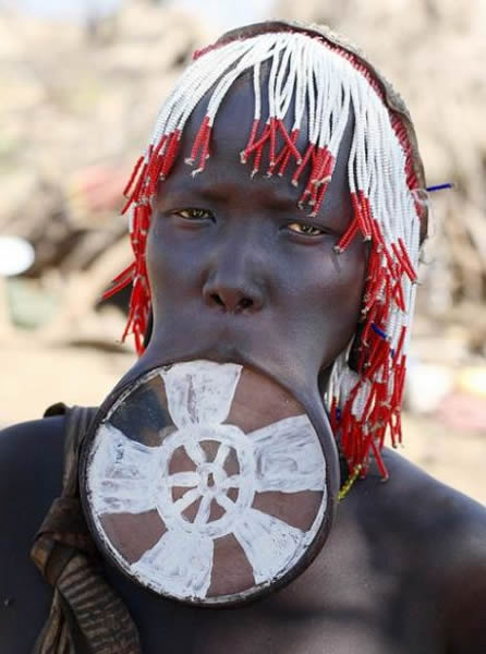 在奥莫国家公园的牛群和耕作者中间,穆尔斯人(Mursi)因佩戴餐碟大小的唇盘而最为出名,该部落的女性从十几岁开始佩戴这种东西。穆尔斯人居住在距离埃塞俄比亚首都亚的斯亚贝巴大约1840公里的奥莫河谷。据估计,现在该部落成员不超过1万人。