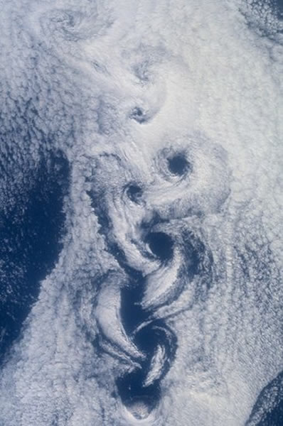 日本北部海面上出现冯卡门漩涡
