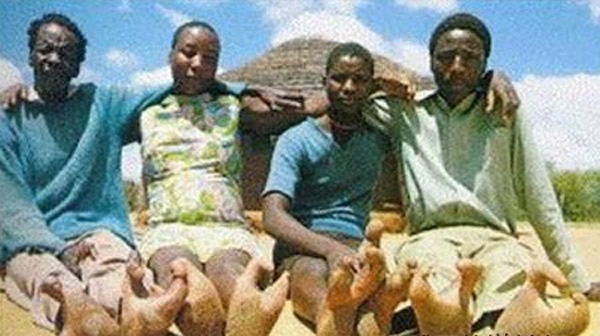 若干年前,一位有两脚趾血统的年轻妇女从其他地方来到了西南津巴布韦,当她与当地的土著结婚之后,她的两脚趾基因就开始起作用,让她的部分后代成为两脚趾人。这时如果在正常的风俗支配下,津巴布韦土著会只和其他部落和地方的人通婚,这样就会使生成两脚趾人的概率减少。可是该地区稀疏的人口使这种风俗得不到延续,两脚趾人不得不和同部落的人结合,让这种两脚趾基因继续繁衍下去。于是,第二代、第三代,就这样两脚趾人越来越多。