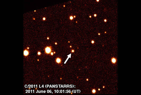这是发现彗星C/2011 L4 (PANSTARRS)的照片,由夏威夷Pan-STARRS 1望远镜拍摄获取