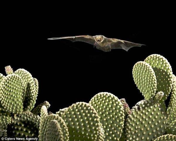 这是摄影师在亚利桑那州中部的沙漠中拍摄的蝙蝠滑翔瞬间,这样的拍摄需要多年的经验和技巧