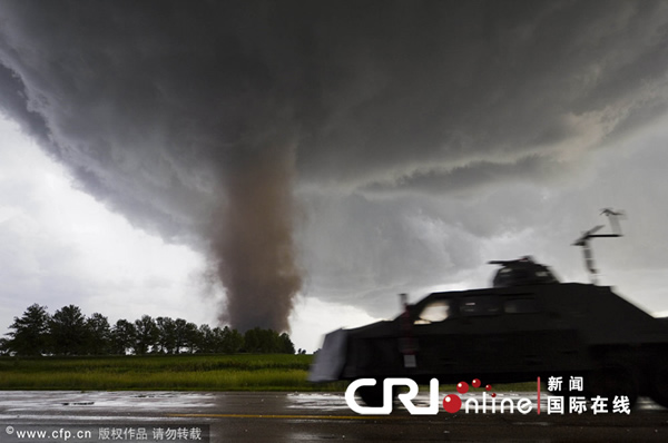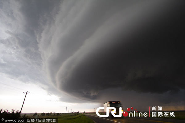 美国摄影师Mike Hollingshead镜头下的骇人漩涡云和暴风雨。Mike Hollingshead素有“暴风猎人”之称。他以个人爱好作为工作,每年开车跋涉数千公里追逐暴风,捕捉那些难得的自然景观。Hollingshead自1999年开始进行这项拍摄活动,2004年辞去工作专心拍摄暴风。为了拍摄到龙卷风,他经常开车紧跟着暴风警告。他每年会拍摄约40场暴风,迄今为止行驶里程合计已超过30,000公里。