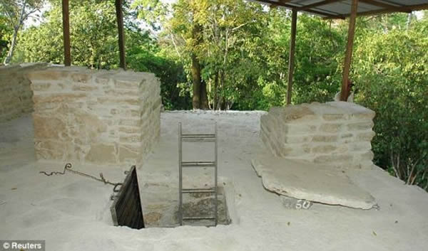 墓室入口。墓室内的地面大约有5平方米,它有一个用石头堆砌的玛雅拱顶结构