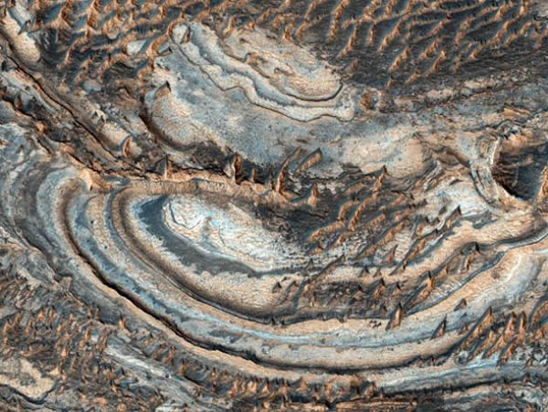 美国国家地理一周精彩太空照:银河系月食 来源: 蜘蛛网 时间:2011年6月29日 14:42 5.火星水手号峡谷 火星水手号峡谷(图片来源:ASU/NASA) 美国宇航局的火星侦察轨道器拍摄的一幅高清晰照片,6月7日对外公布,呈现了火星水手号峡谷。照片中,矿石沉积物带弯曲着穿过沙丘。科学家对矿石进行研究时发现了奇异成分化学信号,可能由火星古代的水形成,浅色带可能由蛋白石构成。火星矿石沉积物可能并不含有宝石矿石,这对宝石爱好者来说无疑是个坏消息。但矿石沉积物带的蛋白石可能是另一个宝藏。在地球上,蛋白石中保存着化石和其他生物学证据。 上一页12345678下一页 上一篇 下一篇