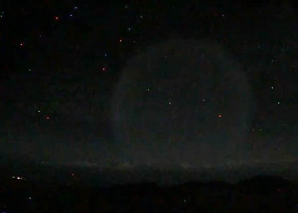 摄像头采用分时拍摄,每隔一段时间拍摄一张照片。可以明显地看到这个光环在数分钟内逐渐变大,直至最终占满整个相机视野,再然后就像它一开始神秘出现那样,神秘的消失了。