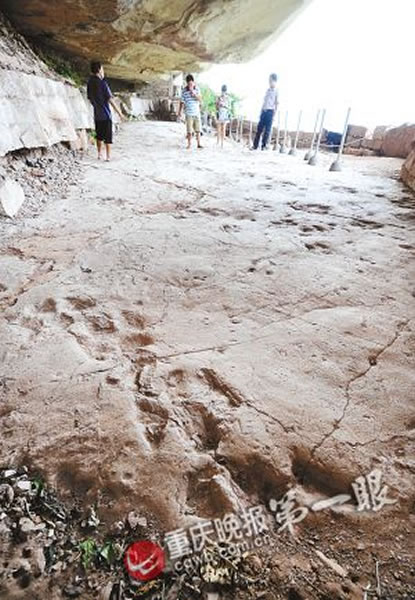 从南宋至今,都有从人类居住或活动的綦江莲花保寨传来喜讯昨日,綦江县对外发布消息称,在那里,仅140余平方米的范围内,除分布着300多个恐龙足迹化石外,7枚非常罕见、填补白垩纪中期翼龙足迹的化石,经中外古生物学者联合科考后也被锁定了。