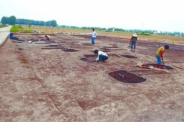 环壕是遗址周边的深沟,顺山集遗址发现了长达千米的环壕,深度在1.5-3米之间,宽度在6-24米之间。“按照8000年前的生产力水平,这1000米环壕的工程量,不亚于明代在南京建明城墙。”林留根告诉记者,“这是整个淮河流域发现的时代最早、规模最大的环壕,15万平方米的遗址,有一半处于环壕的包围和保护中。”