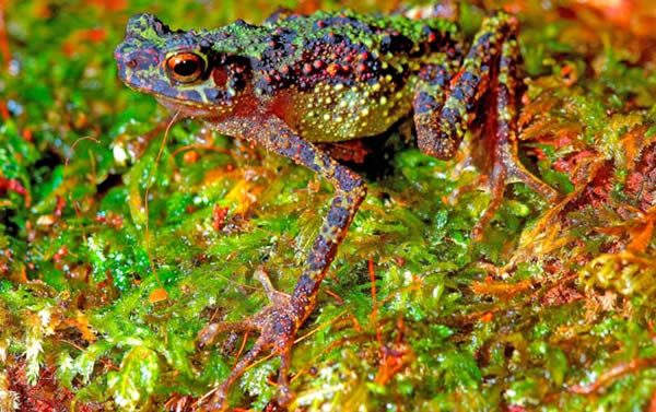 对于科学界而言,在漫长的87年中,有关婆罗洲的彩虹蟾蜍的认识仅仅是屈指可数的几次目击,以及可以追溯到20世纪早期的一张黑白插图。然而在去年年底,沿着将马来西亚与印度尼西亚分离开来的婆罗洲的崎岖山脊,研究人员在树木的高处发现了3只这种色彩鲜艳的两栖动物。这一物种也被称为三发溪流蟾蜍或Ansonia latidisca,作为一种濒临灭绝的物种,它已经被列入自然保护国际联盟红名单,而后者可以保证物种在当地的保护法律下得到保护。