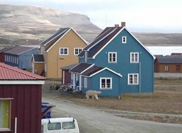 北极熊淡定穿越核心站区(北极黄河站2011年夏季考察队拍摄)