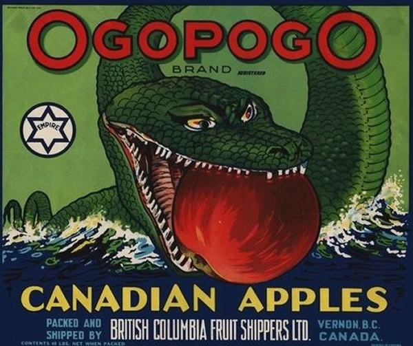 基隆拿市也因此而闻名,该城市出现大量关于奥高普高的艺术品和宣传活动。如图所示,这张图片是上世纪20年代出售苹果的广告,图中是正在吞食苹果的奥高普高水怪。