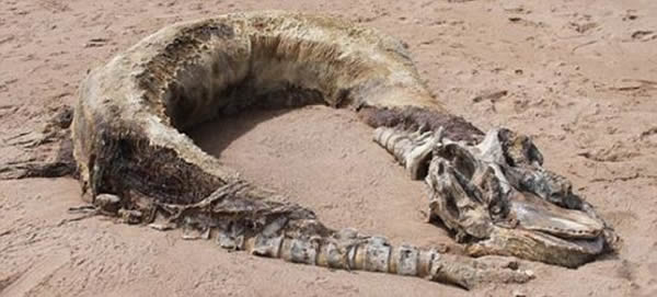 据英国《每日邮报》,英国人玛格丽特-弗利彭斯近日在英国阿伯丁郡附近一处海滩上发现了一具被海水冲刷干净的不明海洋动物骨架。巨大的体形、惊人的外观,所有的特点都让人不得不将其与传说中的海怪联系到一起。这一发现引起了伦敦动物学会的动物学家们的关注和激烈争论。