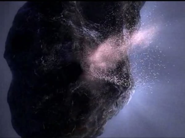 深度撞击任务中探测器与坦普尔1号彗星相撞示意图