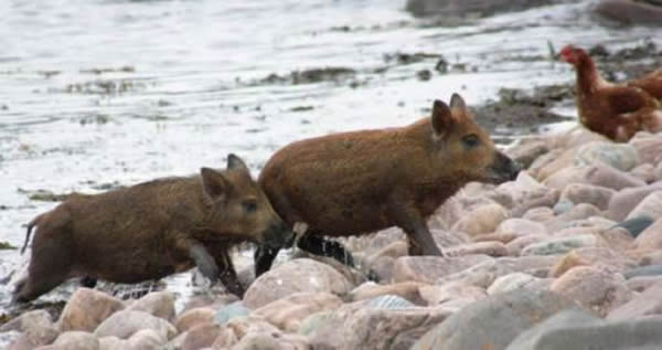 苏格兰两头小猪被主人送到岛上自生自灭,但它们游了1.5公里,自己找回家