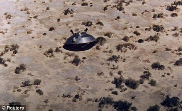 美国空军公布的这张1972年照片,显示的是在新墨西哥州白沙导弹试验场等待回收的海盗号探测器,作为其有关1947年罗斯维尔事件报告的一部分