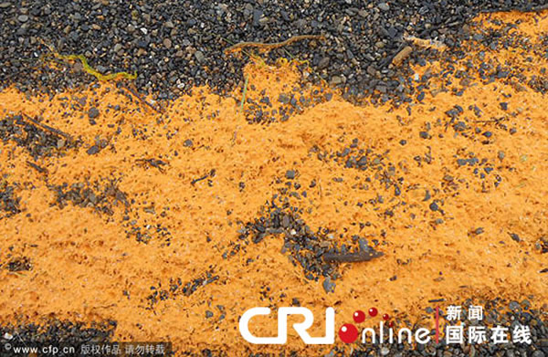据英国《每日邮报》8月7日报道,位于美国阿拉斯加州北极圈内的基瓦利纳(Kivalina)地区,日前天降神秘橙色物质。当地海岸警卫队称,这种物质很可能属于某种藻类。