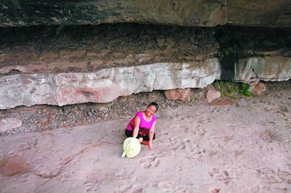 给了“跑路费”的游客便可以随便触摸恐龙脚印