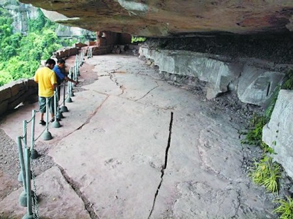 綦江县莲花保寨的大批恐龙群足迹,因其珍贵性与稀有性而闻名全国。近日,有网友在大渝网发帖称,这处已被政府封锁起来以待完善保护措施的地质遗迹保护区,竟成了看守人的赚钱方式——游客但凡交钱给他,就可以入内参观,甚至还可以翻越铁链摸恐龙脚印。昨日,綦江县国土房管局副局长王丰平表示,擅自收钱让游客进入地质保护区,不仅违规,而且还会对遗迹造成破坏,国土部门将联合三角镇政府调查处理此事。