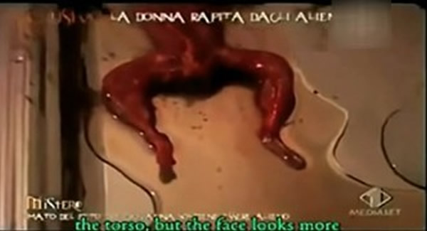 意大利的这个外星婴儿是如何出现的?据她自己称,事发时她看到一个具有金属光泽的飞碟,然后自己毫无意识地走进飞碟,随后出现了4个不明物体,他们说着Gionanna能听懂的话,告诉她不要动,他们将会对她做一些事情。