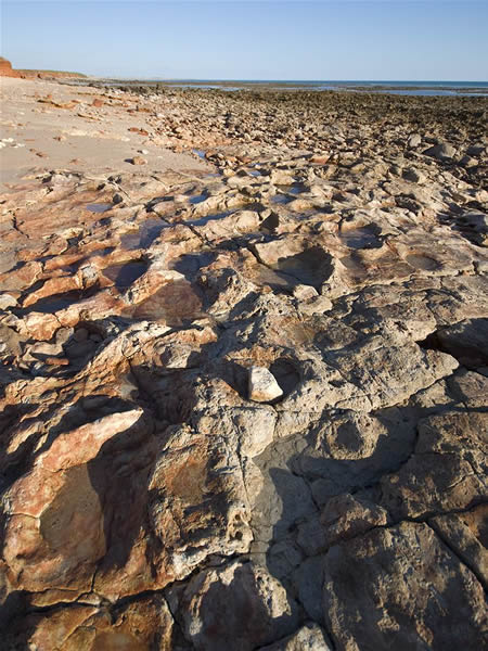 “丹皮尔半岛(Dampier Peninsula)北部海岸可能是在世界上一个最重要和最不同的恐龙足迹地点,在中心区至少识别有十五种不同类型的恐龙足迹”,昆士兰大学古生物学家史提芬.索尔兹伯里(Steven Salisbury)博士说。“通常你即使非常幸运也仅仅可以找到两或三种恐龙足迹。”