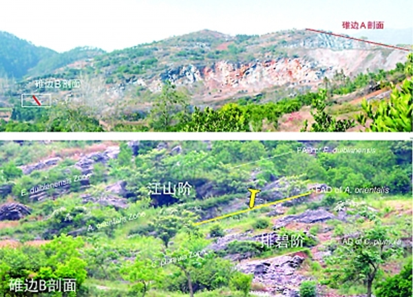 这次“金钉子”发现的地方位于浙江江山县碓边村附近。“我们将这个剖面命名为碓边B。”该所彭善池博士告诉记者。据了解,在决定寻找这枚“金钉子”之前,专家们有两个选择,一个是江山,另一个是湖南,“选择江山的原因,是因为当地的地质条件更好。其实这里,我已经‘想’了近30年。”原来,在1984年,彭善池就和他的老师——南京地质古生物所已故院士卢衍豪一起去过当地,特别针对那里的寒武系和奥陶系界限层段做过深入的调查,取得过重要的进展。于是,2003年,彭善池和他的团队就在此基础上,进行细致的挖掘,冲击“金钉子”。