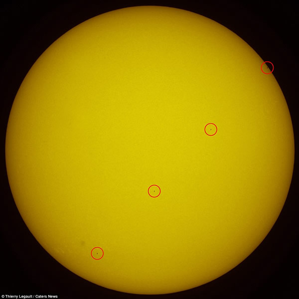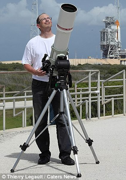 报道称,勒戈是一位天文爱好者、业余摄影师,在拍摄这些令人难以置信的照片时没有借助任何昂贵设备。他仅仅用了一台对准太阳的天文望远镜、一个普通相机以及一个过滤太阳强光的滤镜就成功地在0.9秒的宝贵时间里,4次捕捉到了以7.8公里每秒的速度“横越”太阳的“亚特兰蒂斯”号。