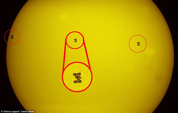 勒戈7月21日拍下的“亚特兰蒂斯”号从太阳正面飞过的影像