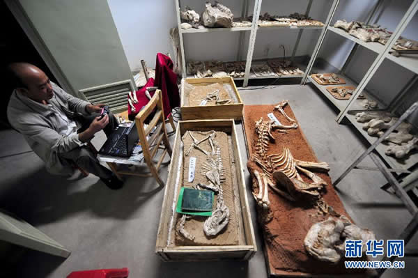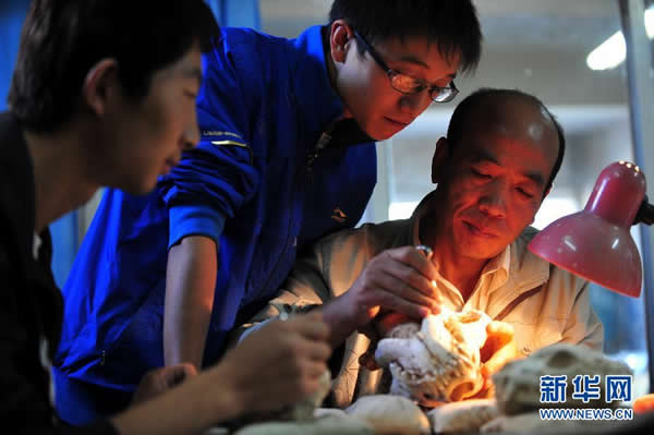 “我是非常幸运的,能亲手‘复活’这么多珍贵的古动物化石。”陈善勤屏住气,小心翼翼地用钢针剔除裹在化石外的岩石,只在停顿的间隙跟记者简单交流几句,语气中透出一份自豪。的确,陈善勤所在甘肃和政古动物化石博物馆存放的古动物化石有3万多件,分属新生代晚期的4个不同哺乳动物群,拥有世界上发现最多的三趾马动物群化石、世界上独一无二的和政羊化石、世界上最大的鬣狗化石、世界上最丰富的铲齿象动物群化石、世界上最大的真马化石和世界上最早的披毛犀化石等6项世界之最殊荣。