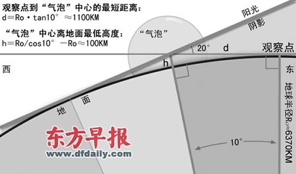 根据“气泡”被阳光照亮,可以大致估算出“气泡”到北京的最近距离和最低高度。